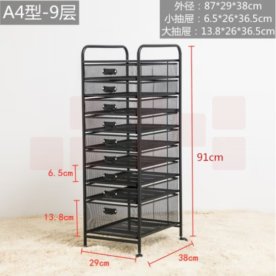 A4文件栏 带抽屉推车文件收纳栏 9屉 货号:WY