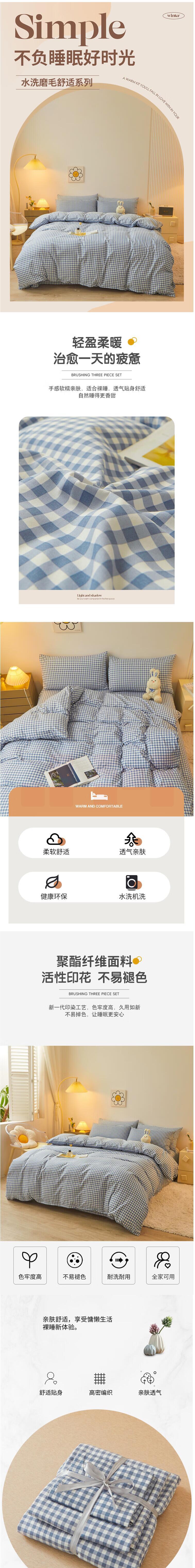 洁丽雅 三件套 被套床单枕套学生宿舍套件 蓝小格(被套1.5×2M) 货号:JC