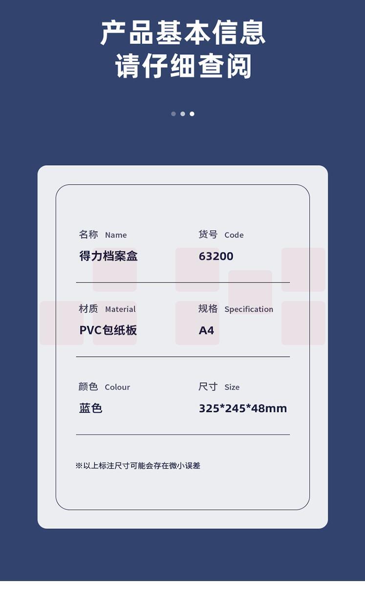 得力(deli)35mmA4档案盒 PVC磁扣式文件盒 加厚PVC档案盒63200