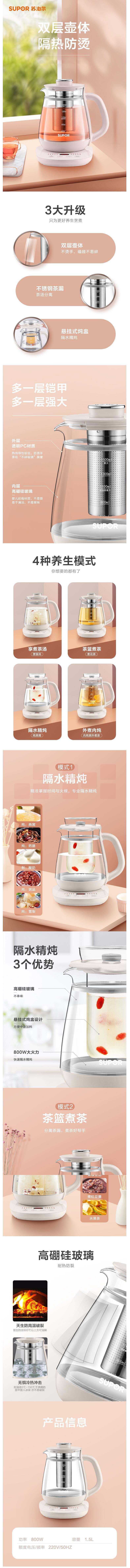 苏泊尔(SUPOR) SW-15Y03 1.5L养生壶 煮茶器 花茶壶电茶壶 电水壶烧水壶电热水壶