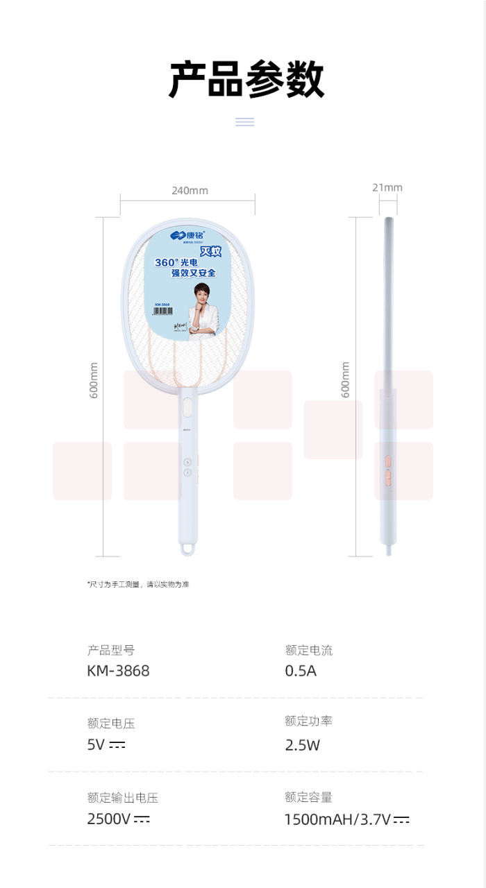 康铭电蚊拍 苍蝇拍 充电式蚊蝇拍KM-3868