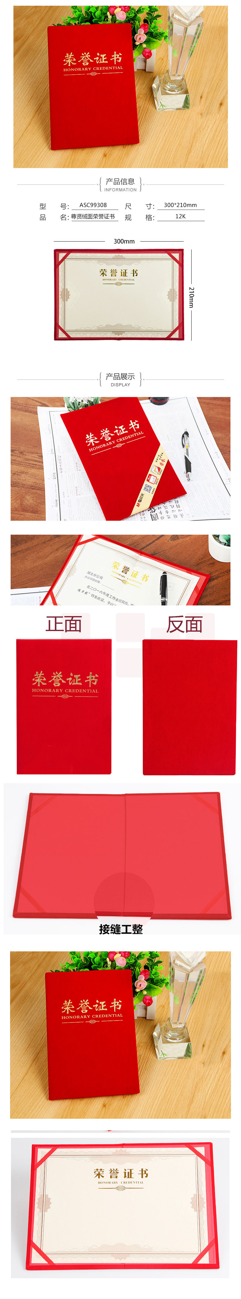 晨光 12K荣誉证书 单本装含芯 229mm*160mm ASC99308 绒面