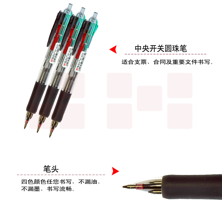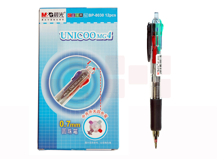晨光(M&G)0.7mm四色子弹头按动圆珠笔多功能中油笔原子笔 12支/盒BP8030