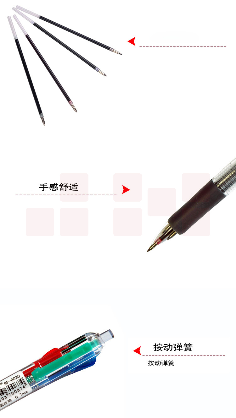 晨光 四色圆珠笔0.7mm按动原子笔BP8030