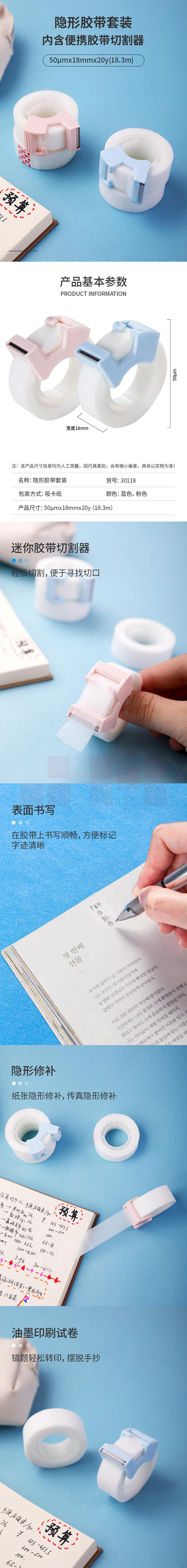 得力30118隐形胶带套装18mm*20y*50um(白色)(2卷/卡)