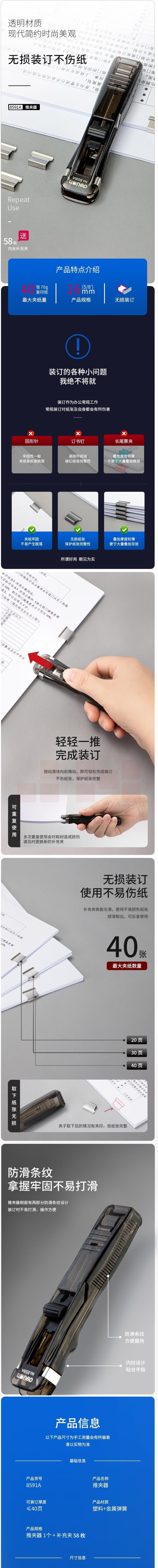 得力 推夹器+58枚补充夹(可夹40张) 8591A+8592-1PCS