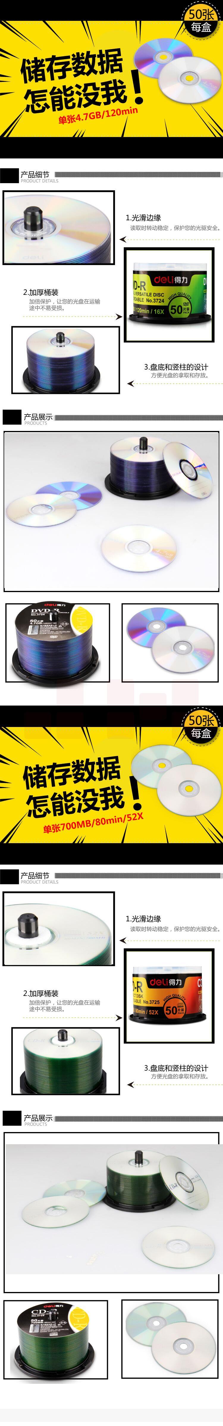 得力(deli)刻录碟片CD-R光盘刻录盘50片/筒 1筒装 3725