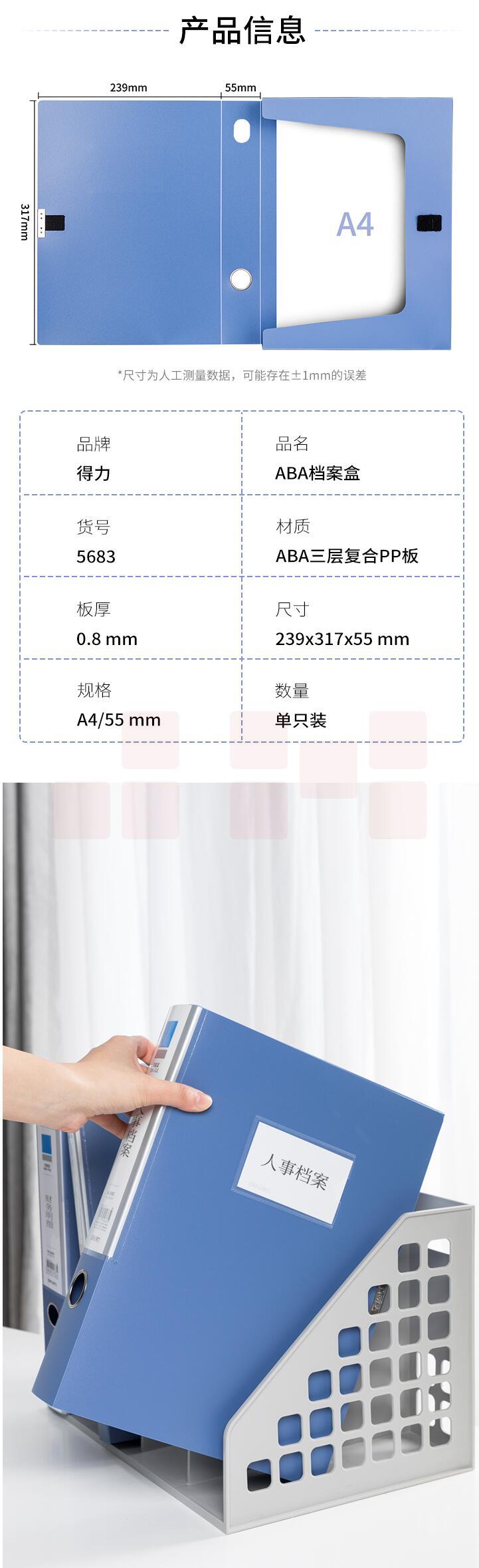 得力10只55mmA4粘扣档案盒塑料文件盒5683