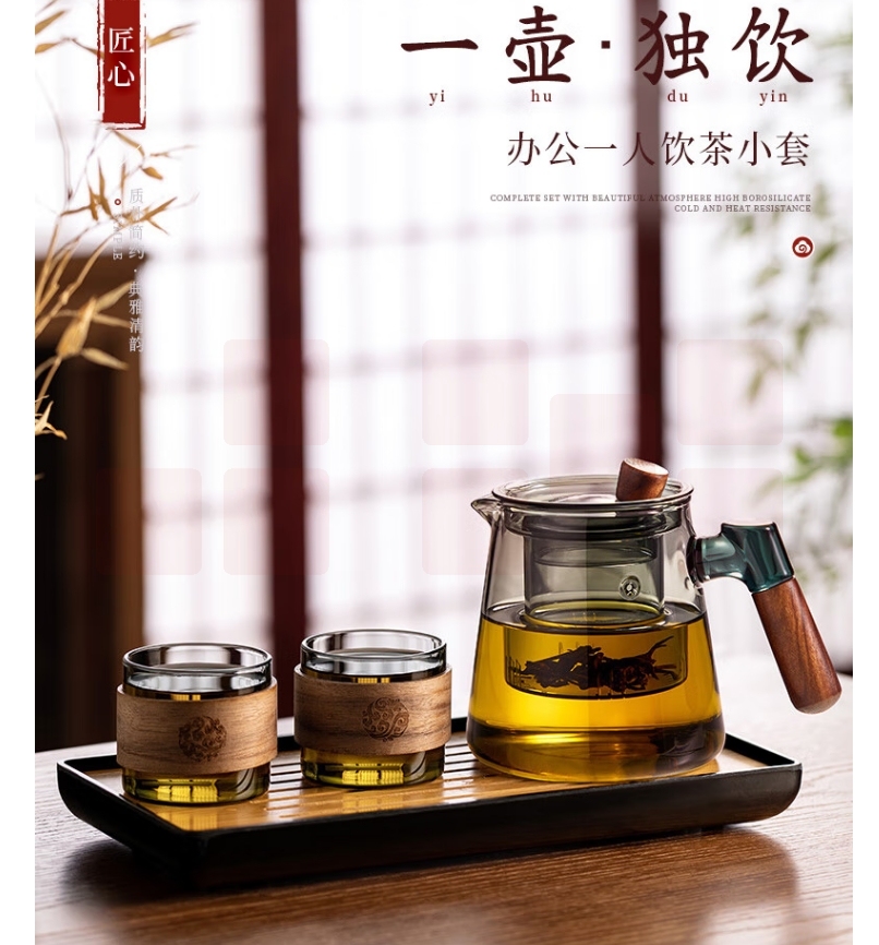 泡茶壶茶水分离套装 一壶二杯+托盘 货号:JC