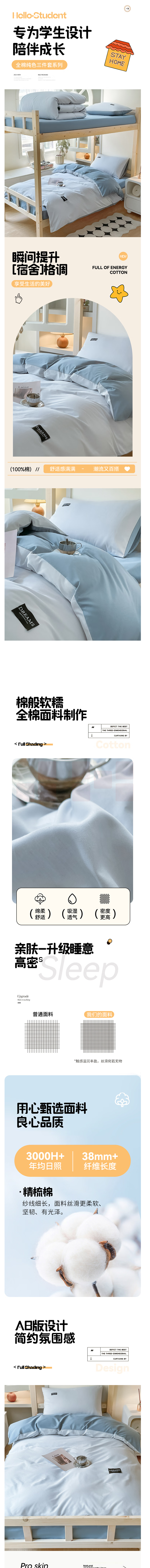 无印良品纯棉学生宿舍床上三件套 货号:JC