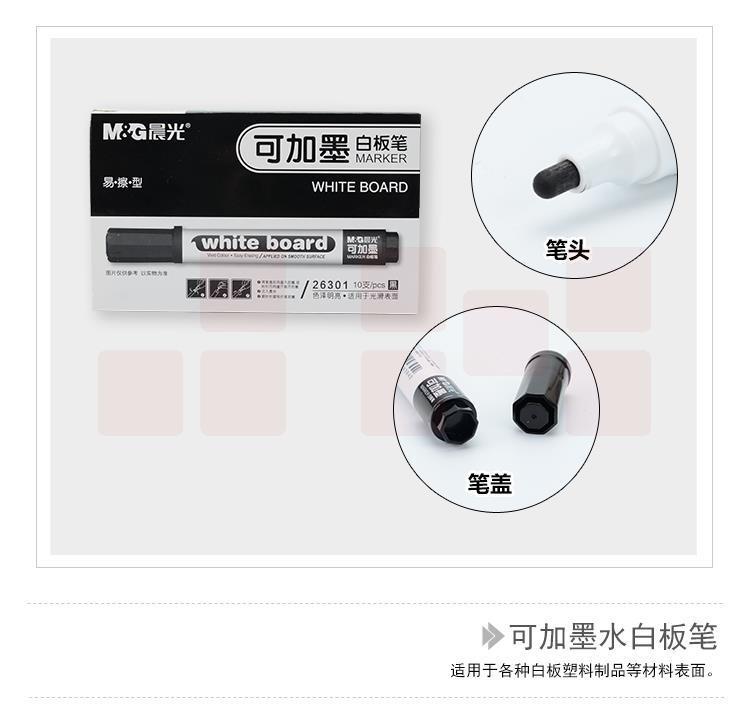 晨光晨光(M&G)10支装 红色办公白板笔 可加墨无痕速干会议笔 单头记号笔 AWM26301
