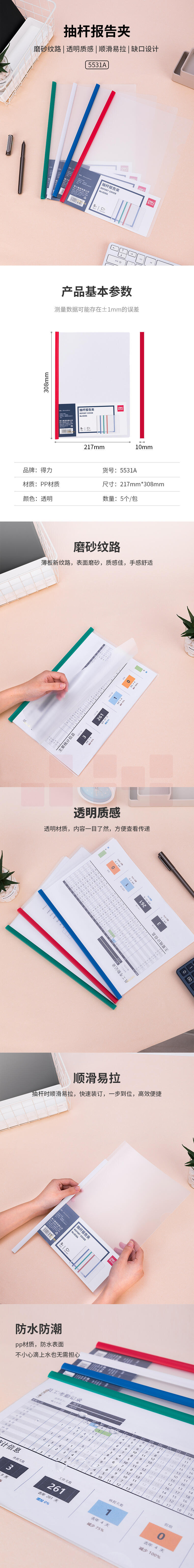 得力(deli)抽杆夹侧宽9mm三角杆拉杆夹约可容纸50页 5531 5只装 混色