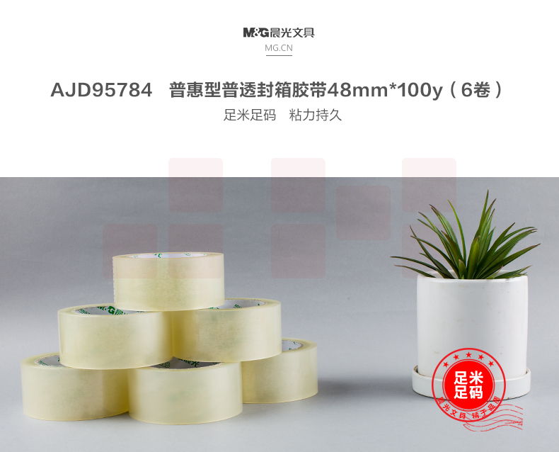 晨光(M&G)封箱胶带透明胶带 48mm*91.4米/卷 6卷装 AJD95784