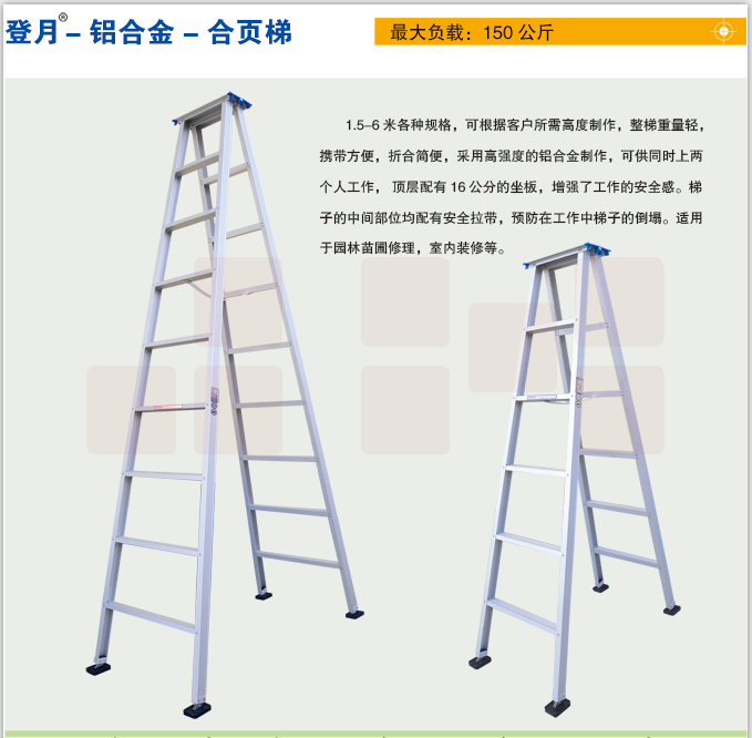 登月 铝合金人字梯2.5米 (壁厚2.0mm)