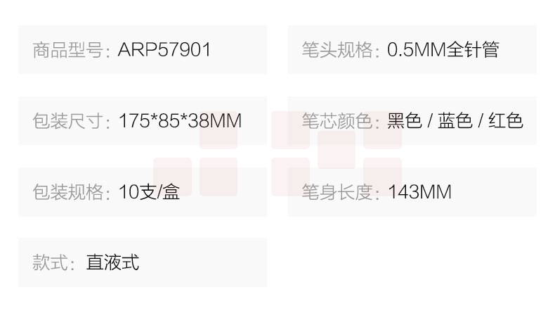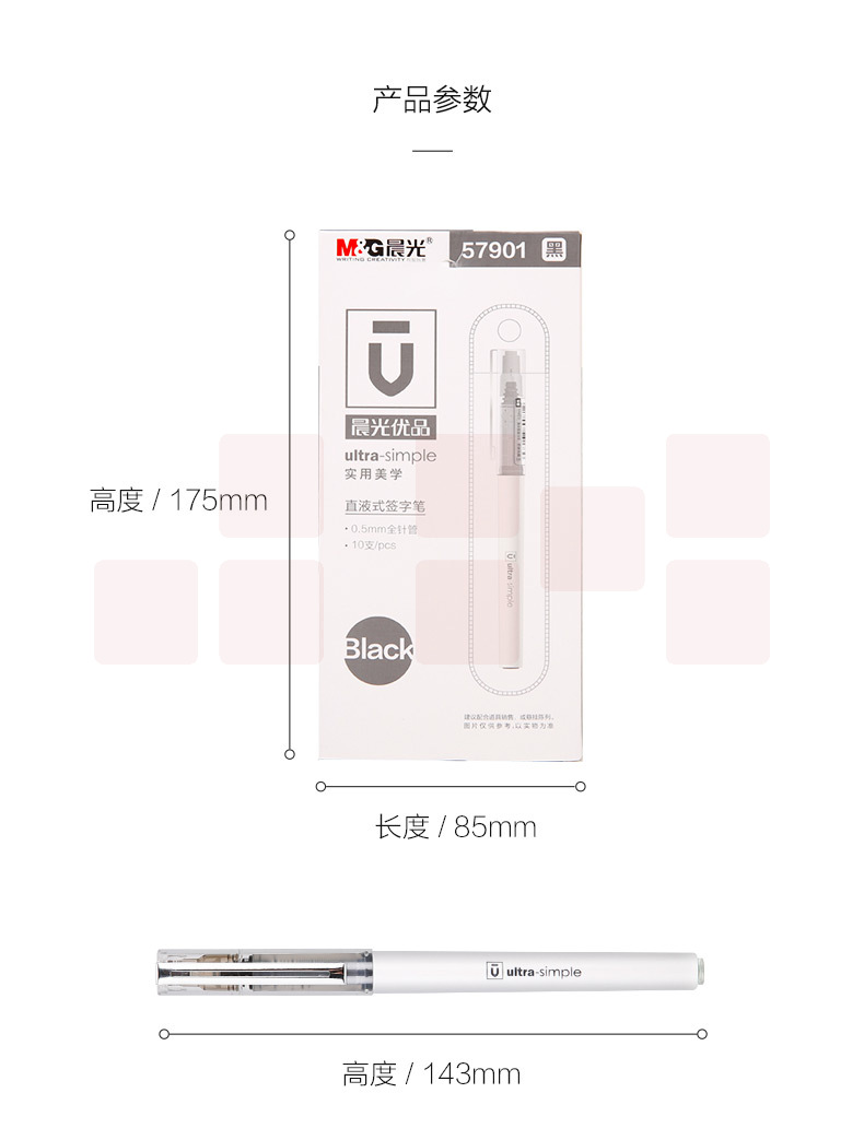 晨光 速干签字笔 ARP57901 直液式全针管签字笔 0.5mm黑色中性笔 10支/盒