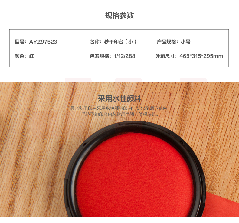 晨光(M&G)φ70mm圆形塑壳财务秒干印台印泥红色AYZ97523