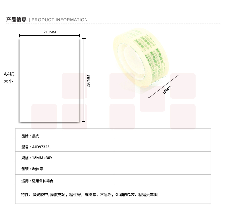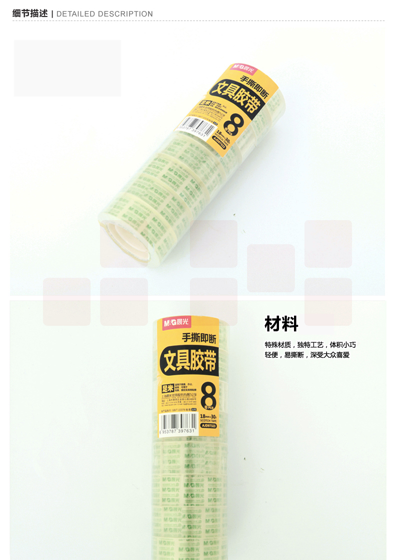 晨光(M&G)文具胶带18mm*30Y 学生透明胶带 办公用品AJD97323 一包8卷