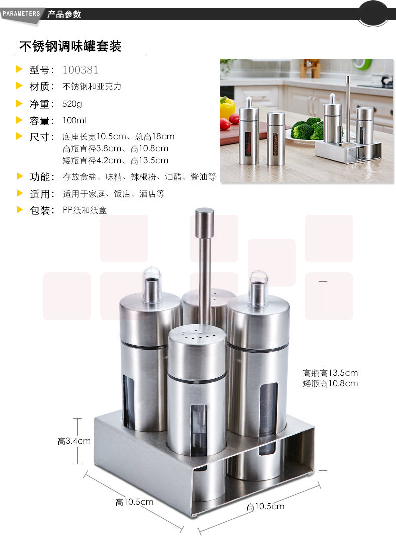 304不锈钢味瓶调料盒胡椒盐罐醋瓶酱油瓶油壶餐桌调味瓶四件套装