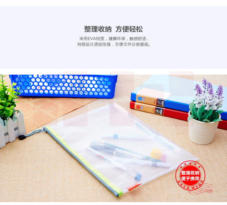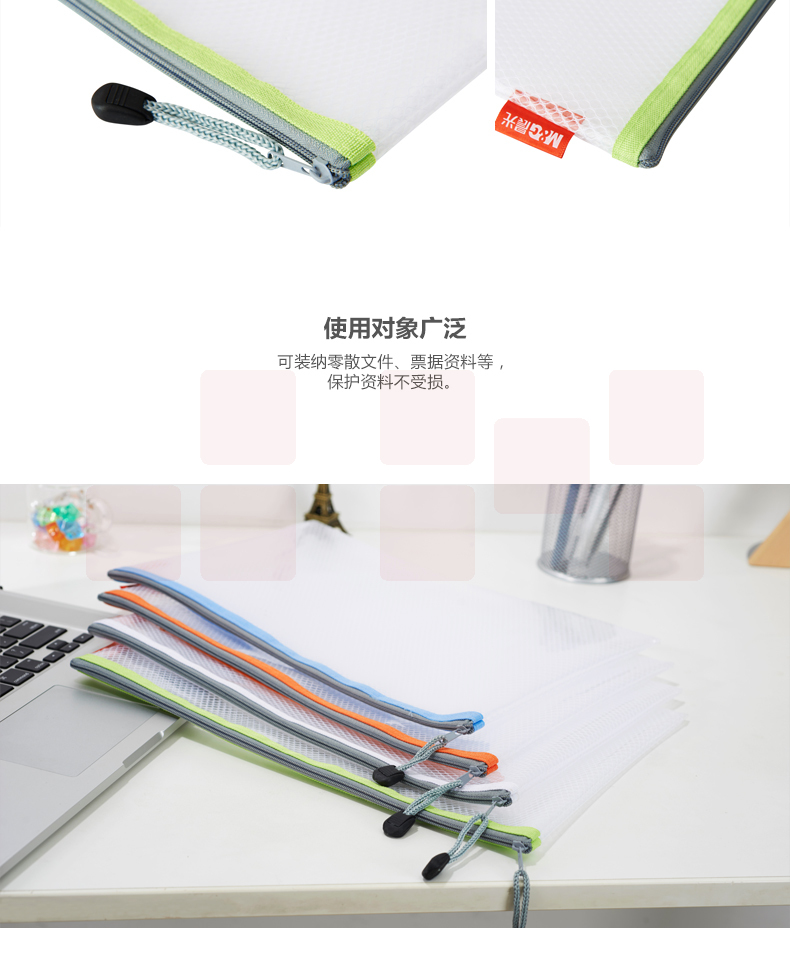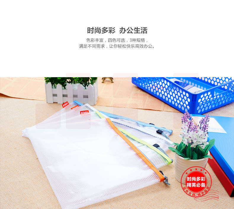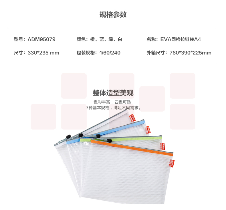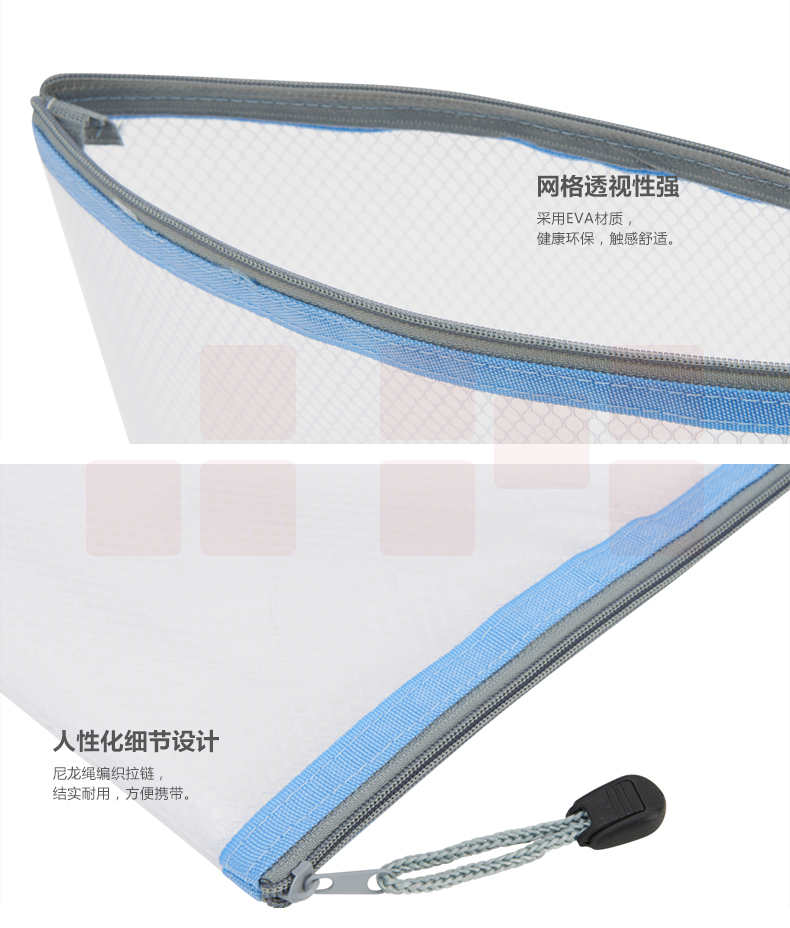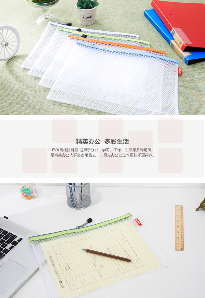 晨光 A4文件袋资料袋EVA 网格拉链袋 4个装 文件票据收纳袋ADM95079