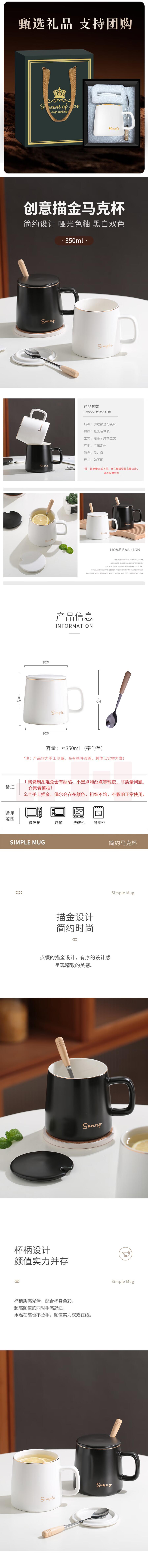 传旗 陶瓷马克杯350ml带勺盖咖啡杯水杯子办公室茶杯 白色礼盒套装