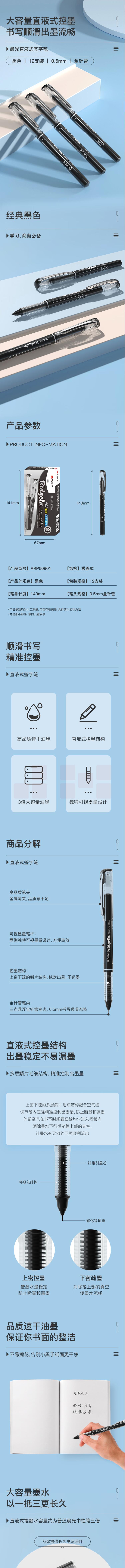 晨光(M&G)0.5mm黑色直液笔中性笔 全针管签字笔 12支/盒 单支价格ARP50901