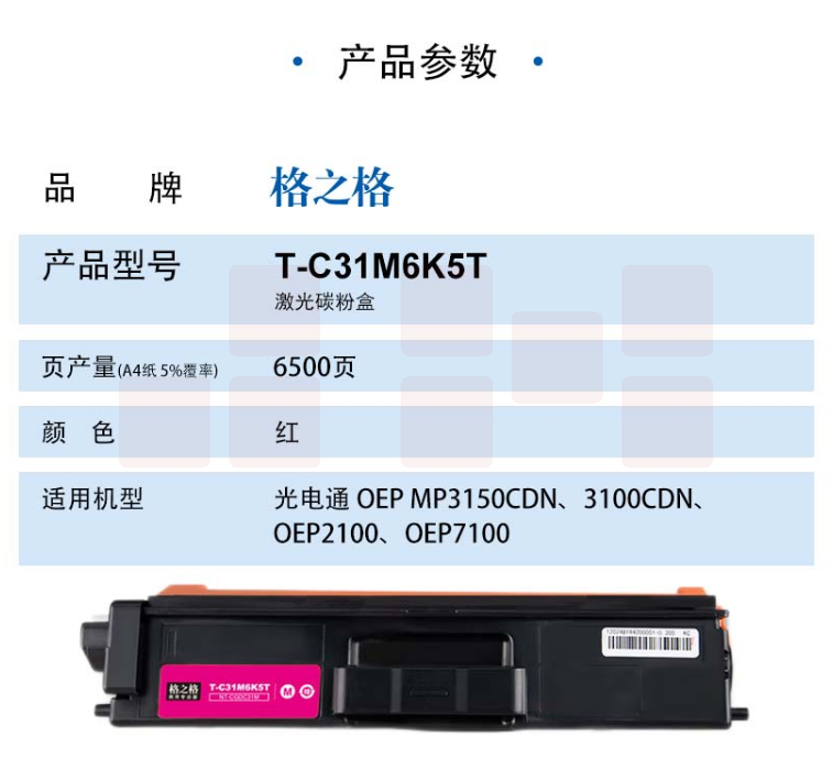 格之格NT-CGDC31M商专版红色粉盒T-C31M6K5T适用于光电通OEPmp3150cdn/3100cdn/OEP2100/OEP7100