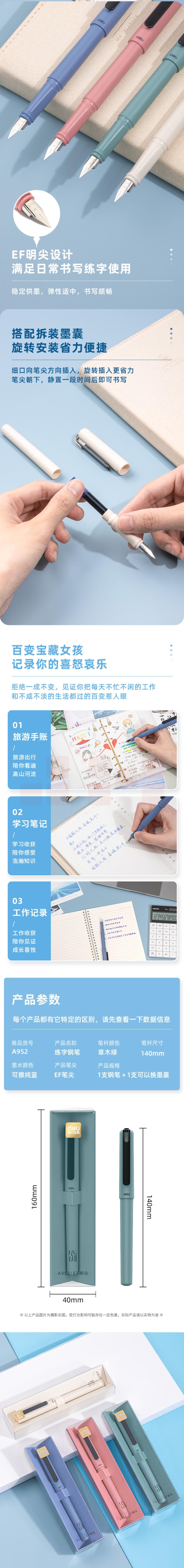 得力(deli)乐素正姿练字钢笔 书写签字墨水笔EF明尖(草木绿)()A952