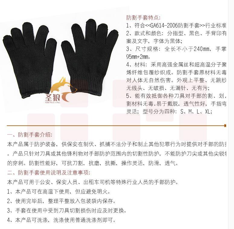 5级加厚防割手套 防砍手套 劳动防护安全手套