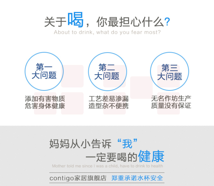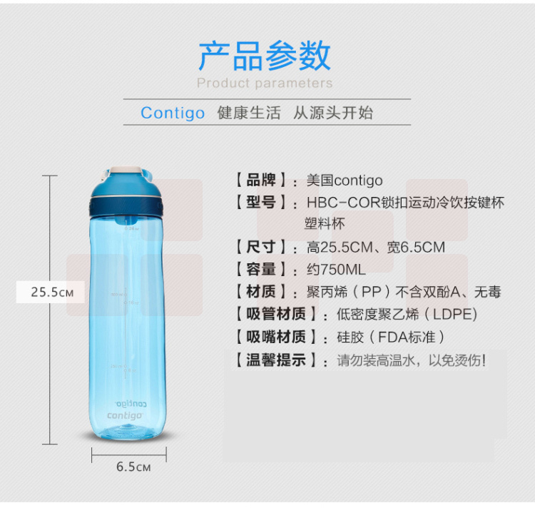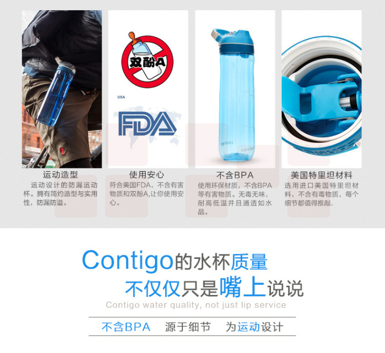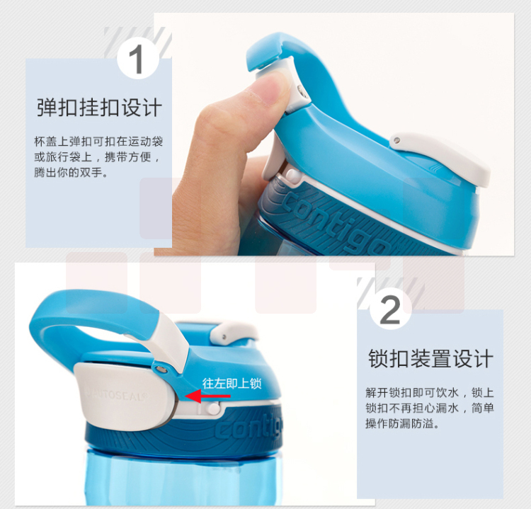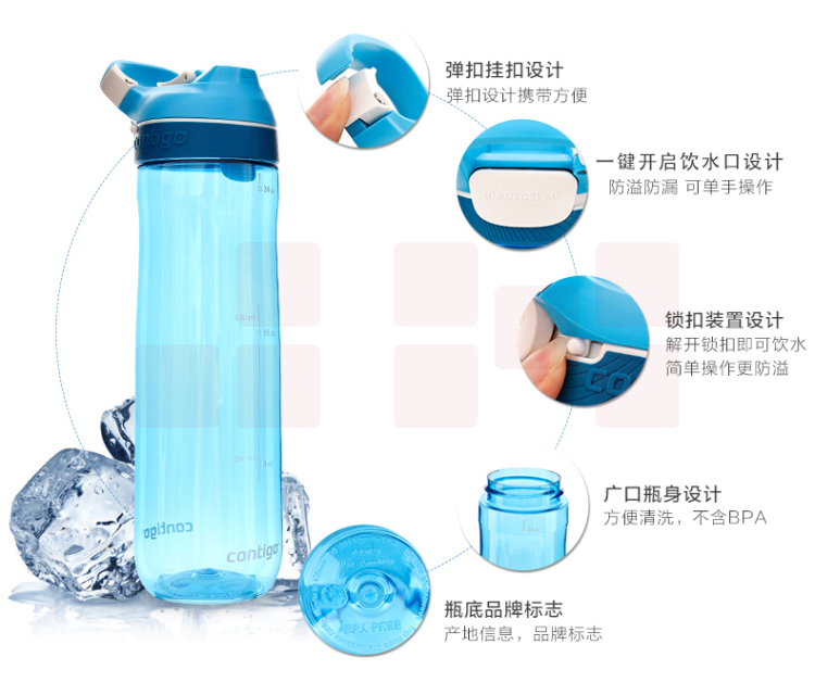 CONTIGO 美国Contigo 按键水杯户外运动随手杯密封防漏 天蓝色HBC-COR001