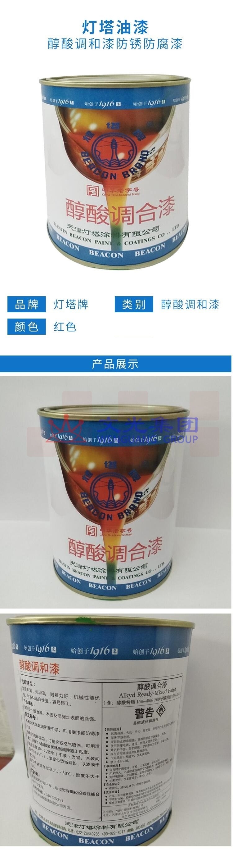 灯塔 油漆醇酸调和漆防锈防腐漆 0.8KG/桶 红色