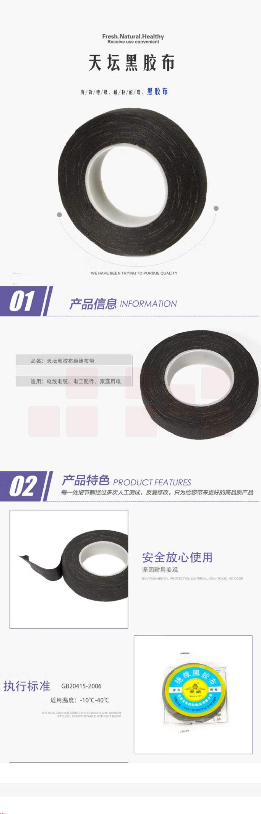 天坛 黑胶布 绝缘包布 电工胶布 18mm*10米 10卷/筒 单卷价格