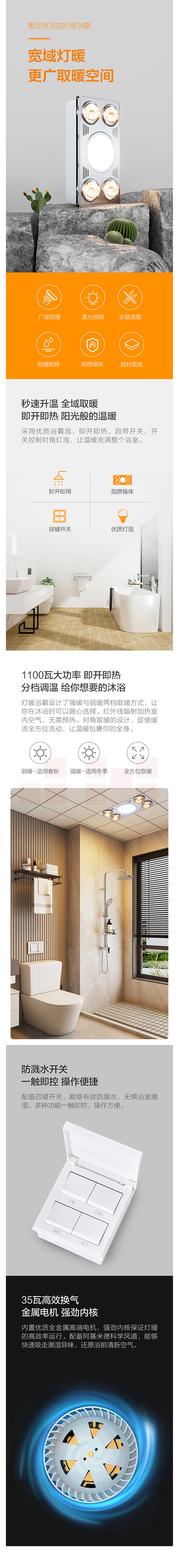 欧普(OPPLE)浴霸灯暖照明排气一体集成300x600卫生间取暖换气照明三合一F05