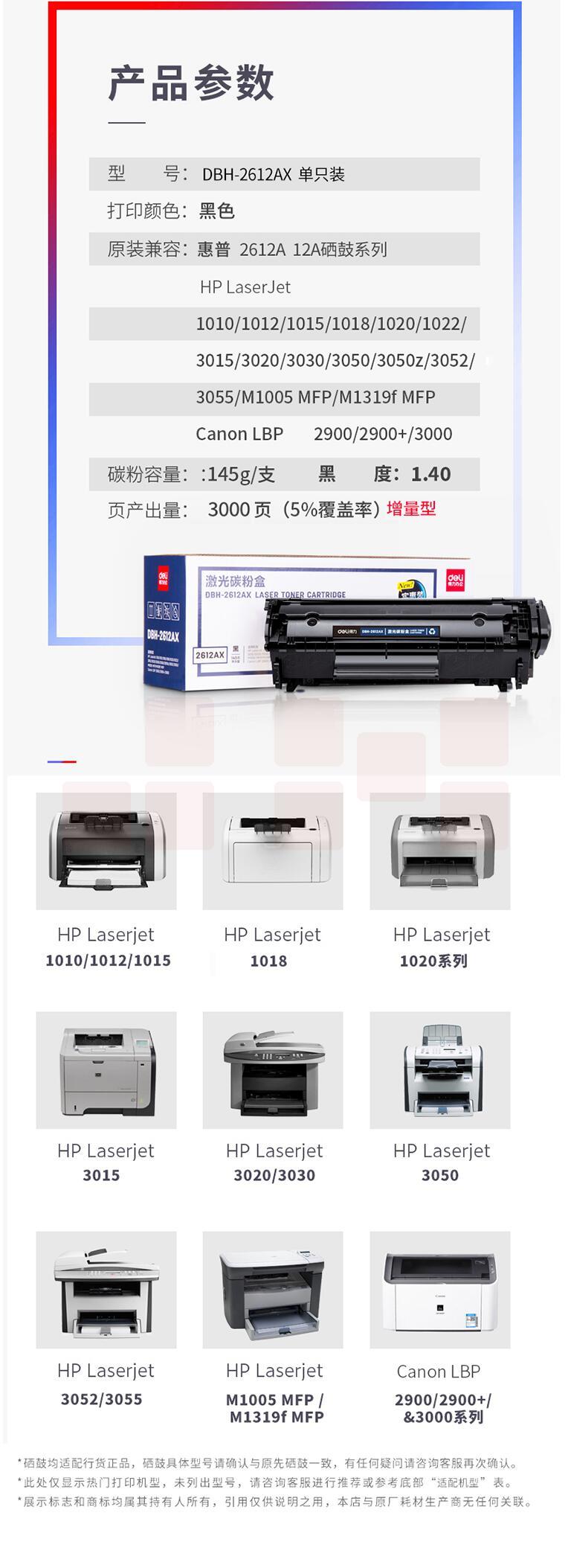 得力 DBH-2612AX硒鼓 碳粉盒 2612A硒鼓(适用惠普hp1020plus 3050 M1005 1010 1015 M1319f佳能2900)