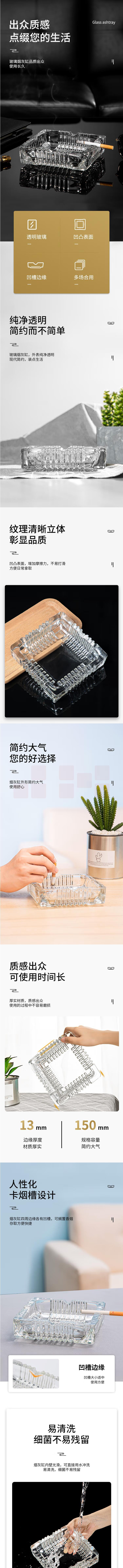 得力(deli)9579 玻璃方形烟灰缸150*150mm