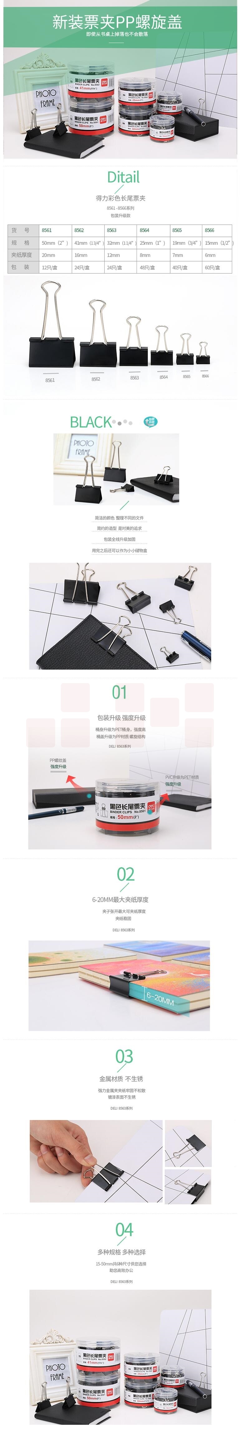 得力 24只 32mm长尾夹票夹 金属燕尾夹票据文件夹子 黑色 中号8563