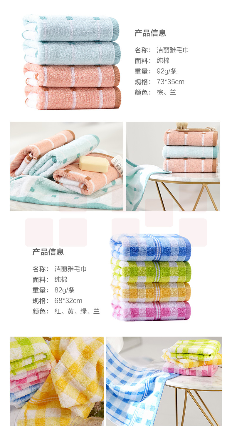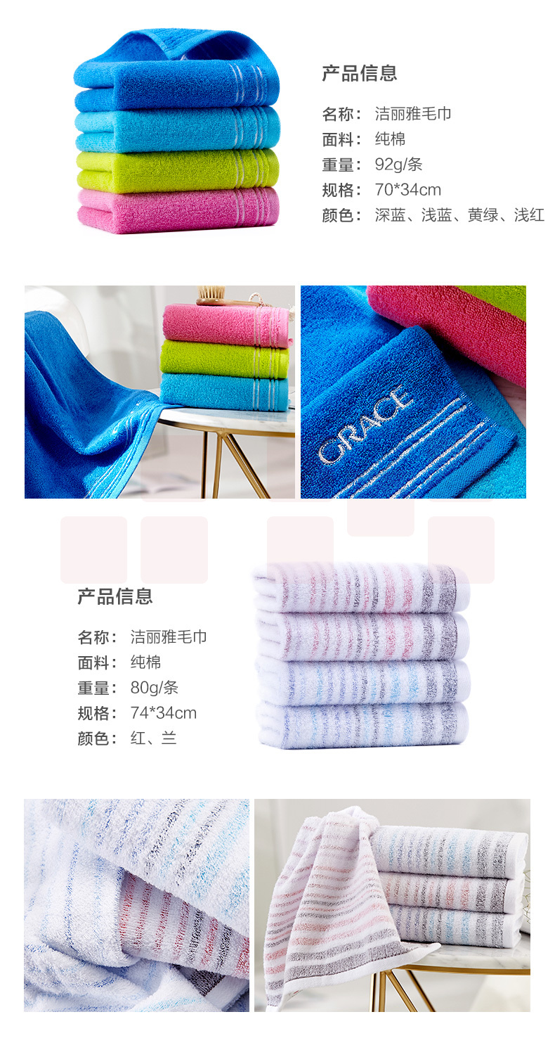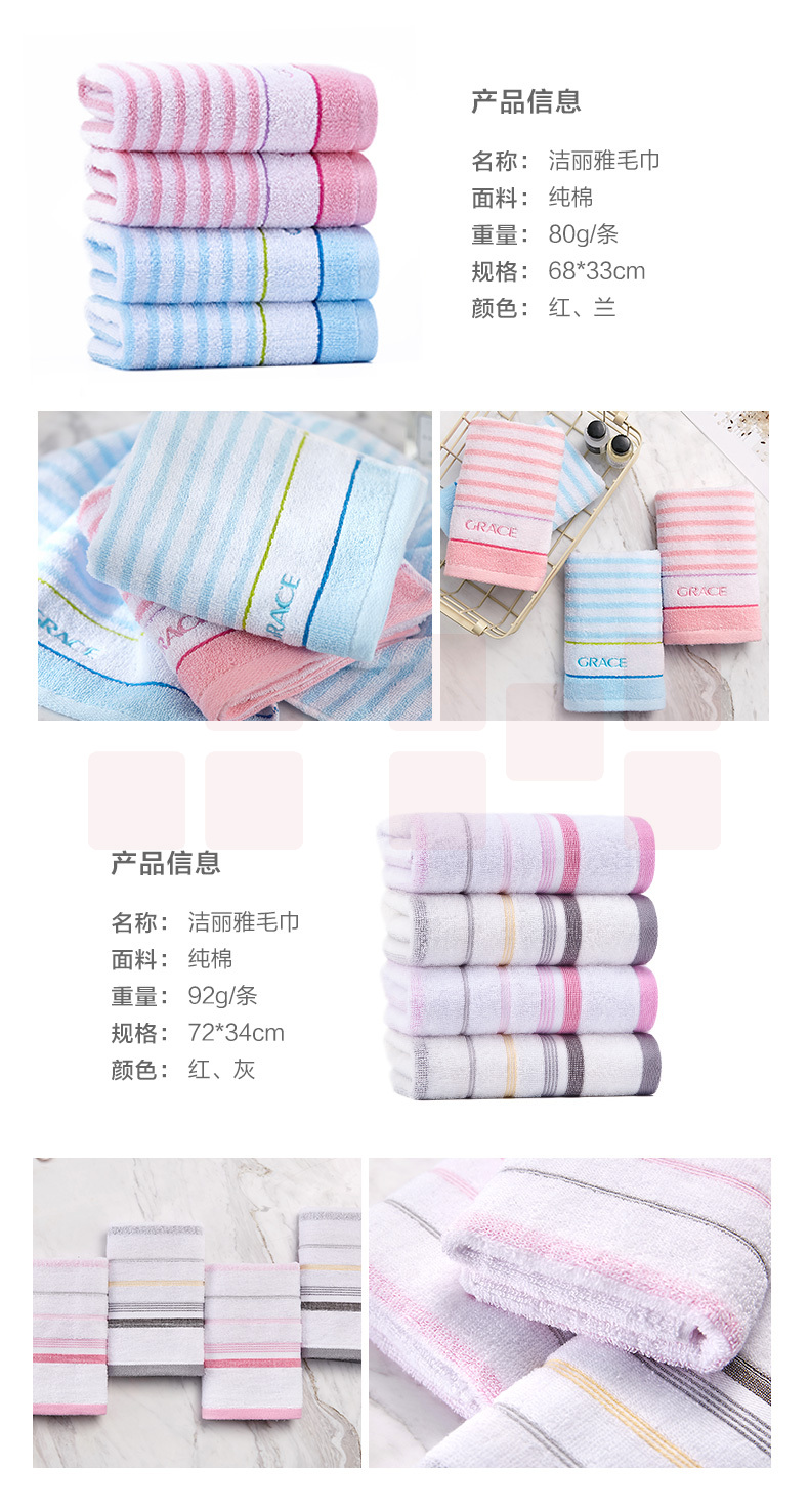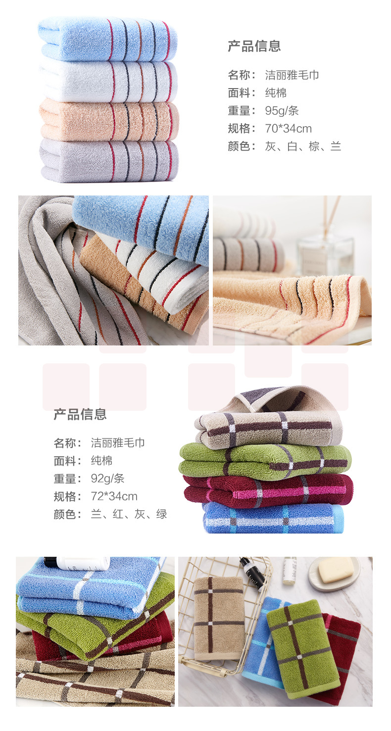 洁丽雅6714毛巾纯棉 洗脸面巾 素色条纹大毛巾 70*34cm