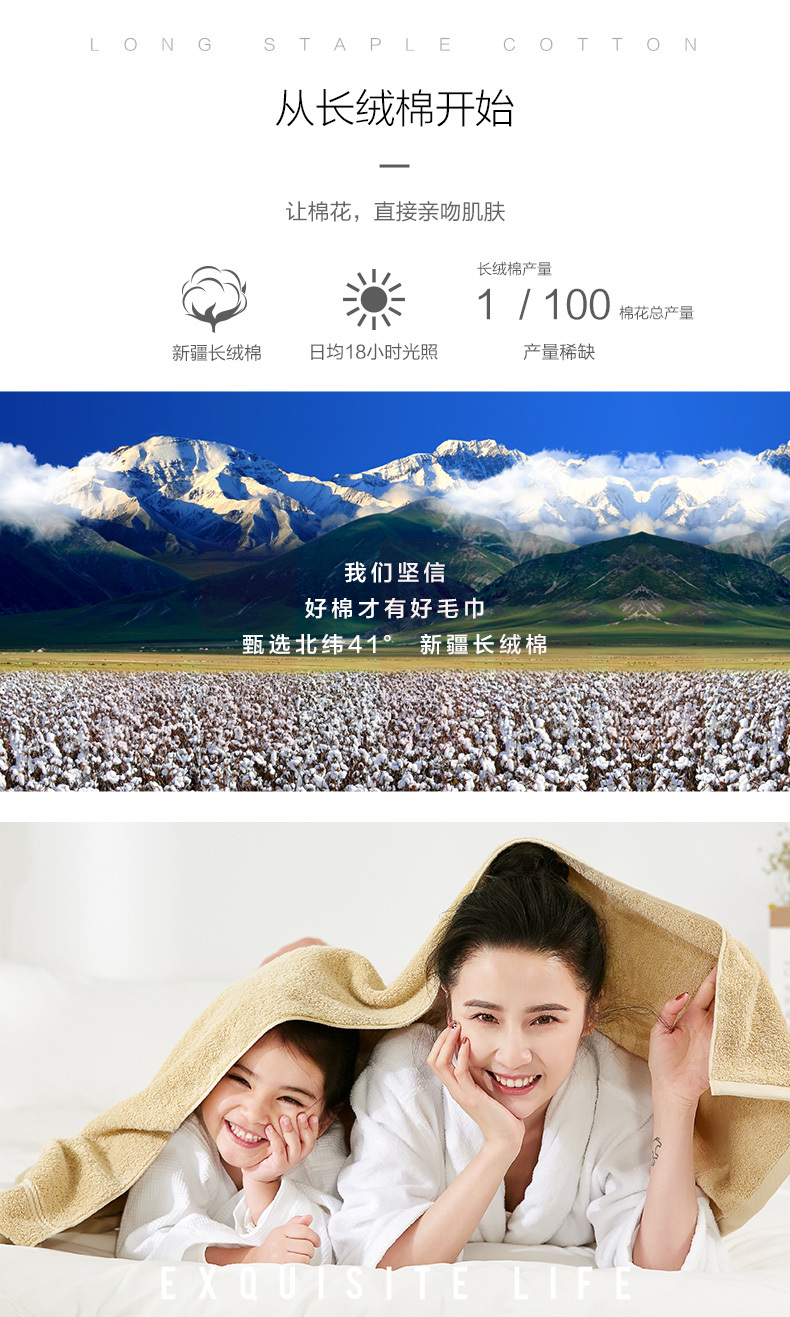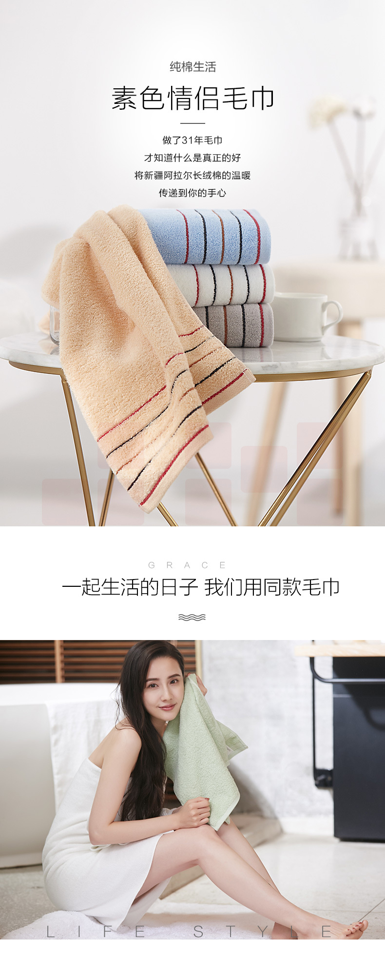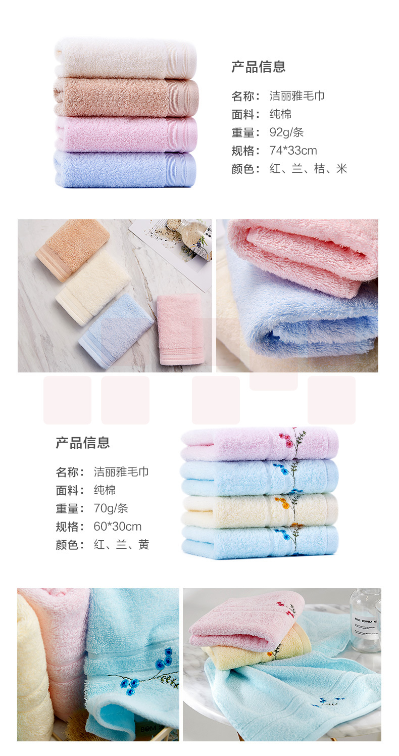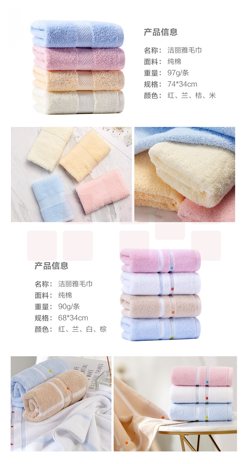 洁丽雅6714毛巾纯棉 洗脸面巾 素色条纹大毛巾 70*34cm