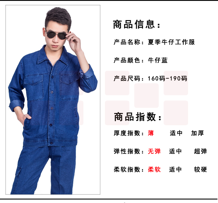 威特仕 牛仔棉工作服拉链电焊汽修长袖套装加厚全棉多口袋焊工服 1.2kg 彩色