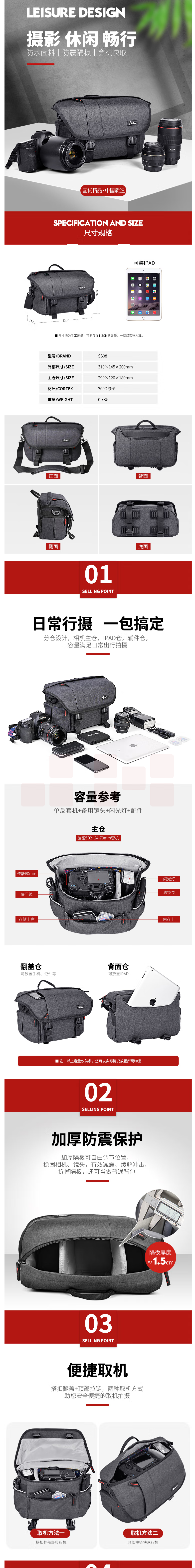 锐玛 SS08 专业单肩斜跨相机包佳能尼康索尼微单背包大容量摄影包单反包