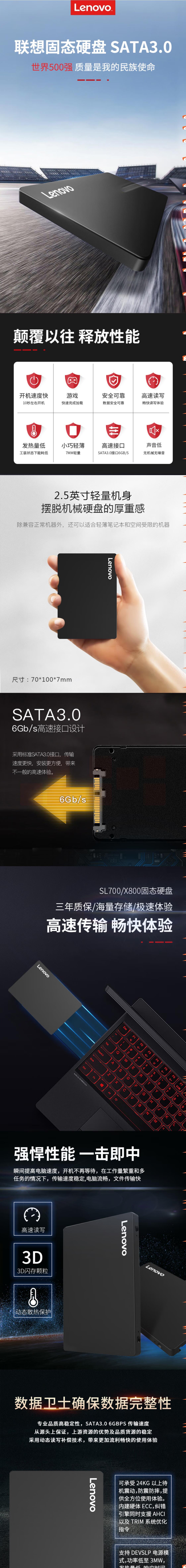 联想(Lenovo)X800系列 固态硬盘 SSD 台式机笔记本通用加装硬盘 SATA3接口 2.5英寸 512GB