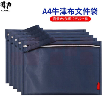 国为 A4牛津布袋文件袋公文包 手提袋 拉链资料加厚拉边袋宣传培训收纳袋会议包 5个装