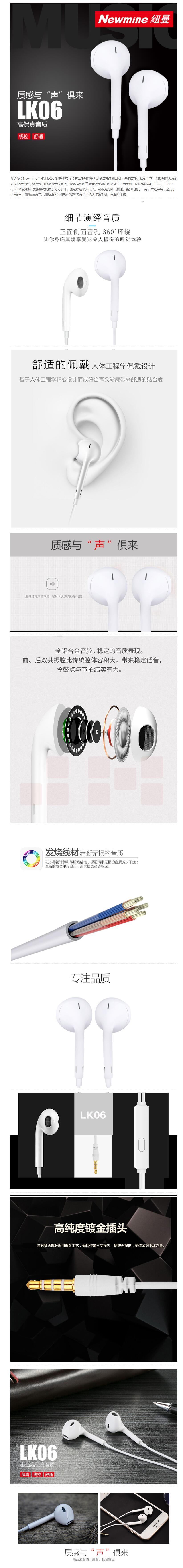 纽曼(Newmine)NM-LK06 全兼容线控音乐手机耳机 白色