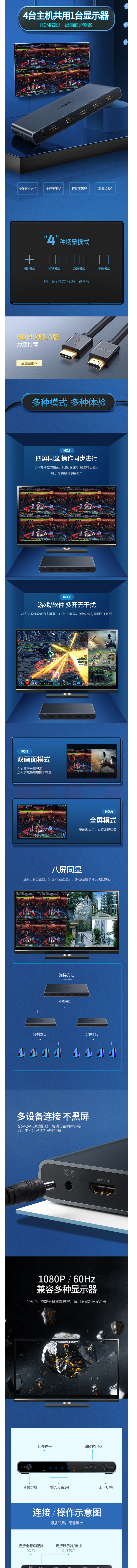 绿联 CM201 HDMI分割器四进一出分配器 深空灰 50745