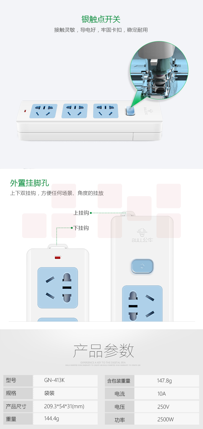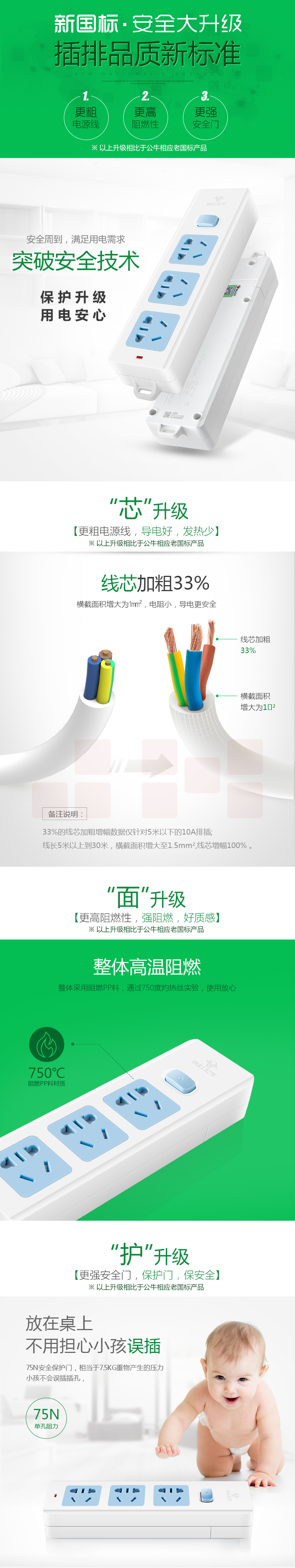 公牛GN-413K 3位总控 无线多位插座 插排