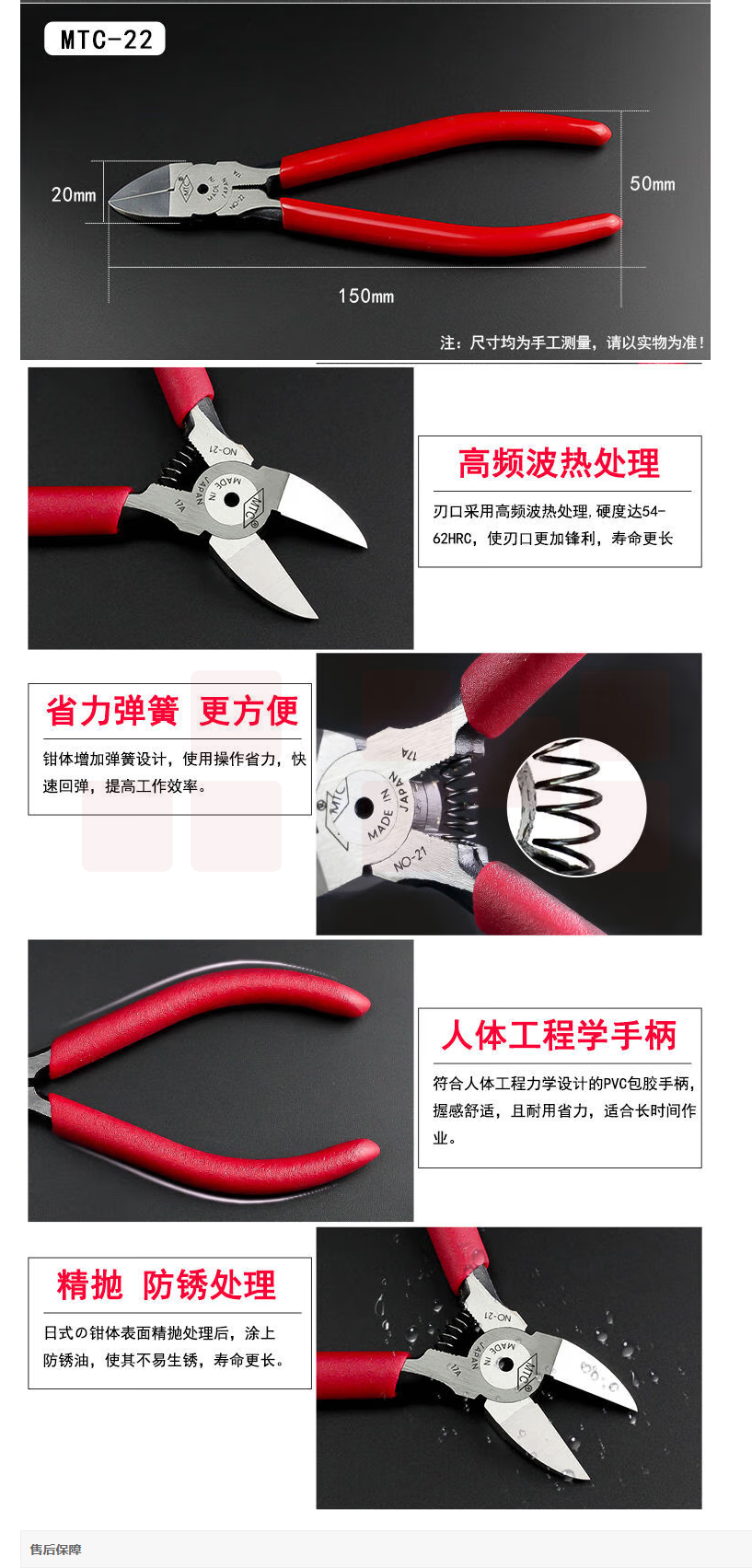 MTC 斜嘴钳 MTC-22 1把 6寸 销售单位:把 货号:JC