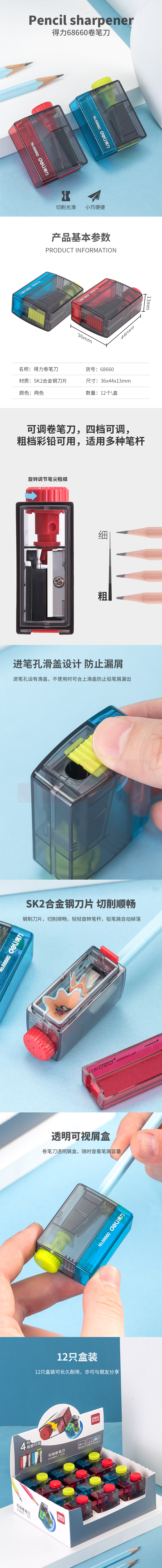 得力68660卷笔刀 笔刨 转笔刀(混色)(12个/盒)