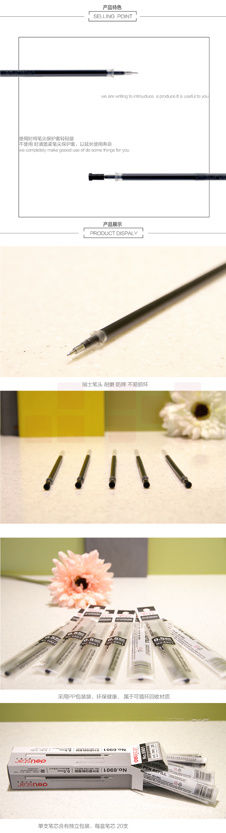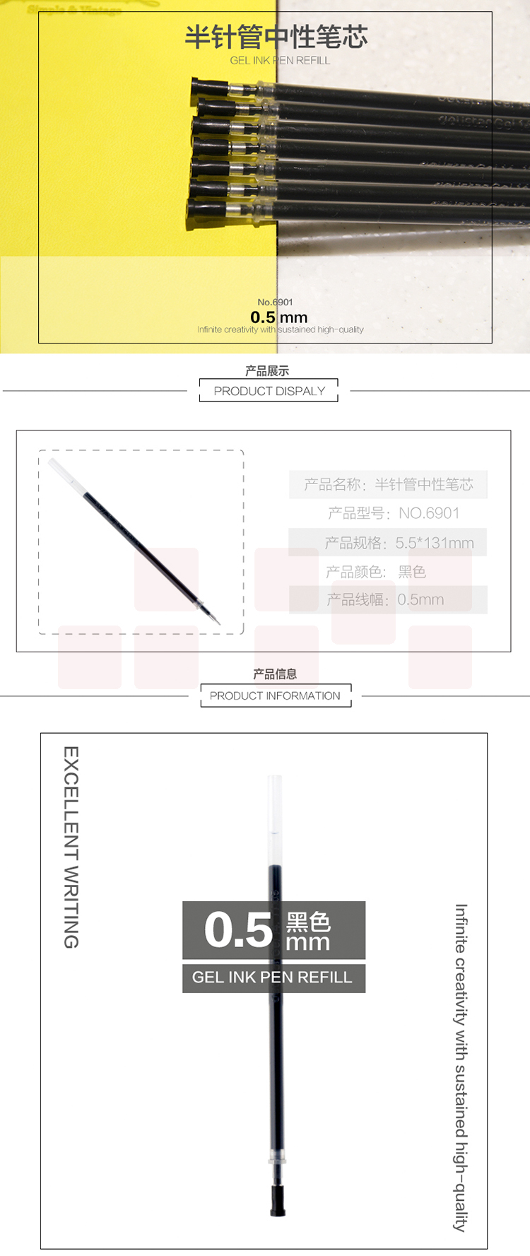 得力 6901 中性笔芯 0.5mm 半针管(黑、红颜色备注) 20支*3盒