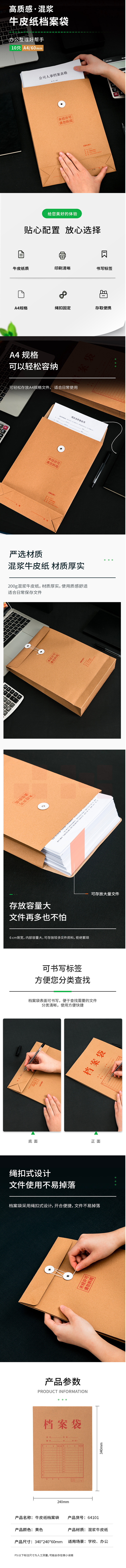 得力(deli) 64101 10只A4混浆200g牛皮纸档案袋 侧宽6cm