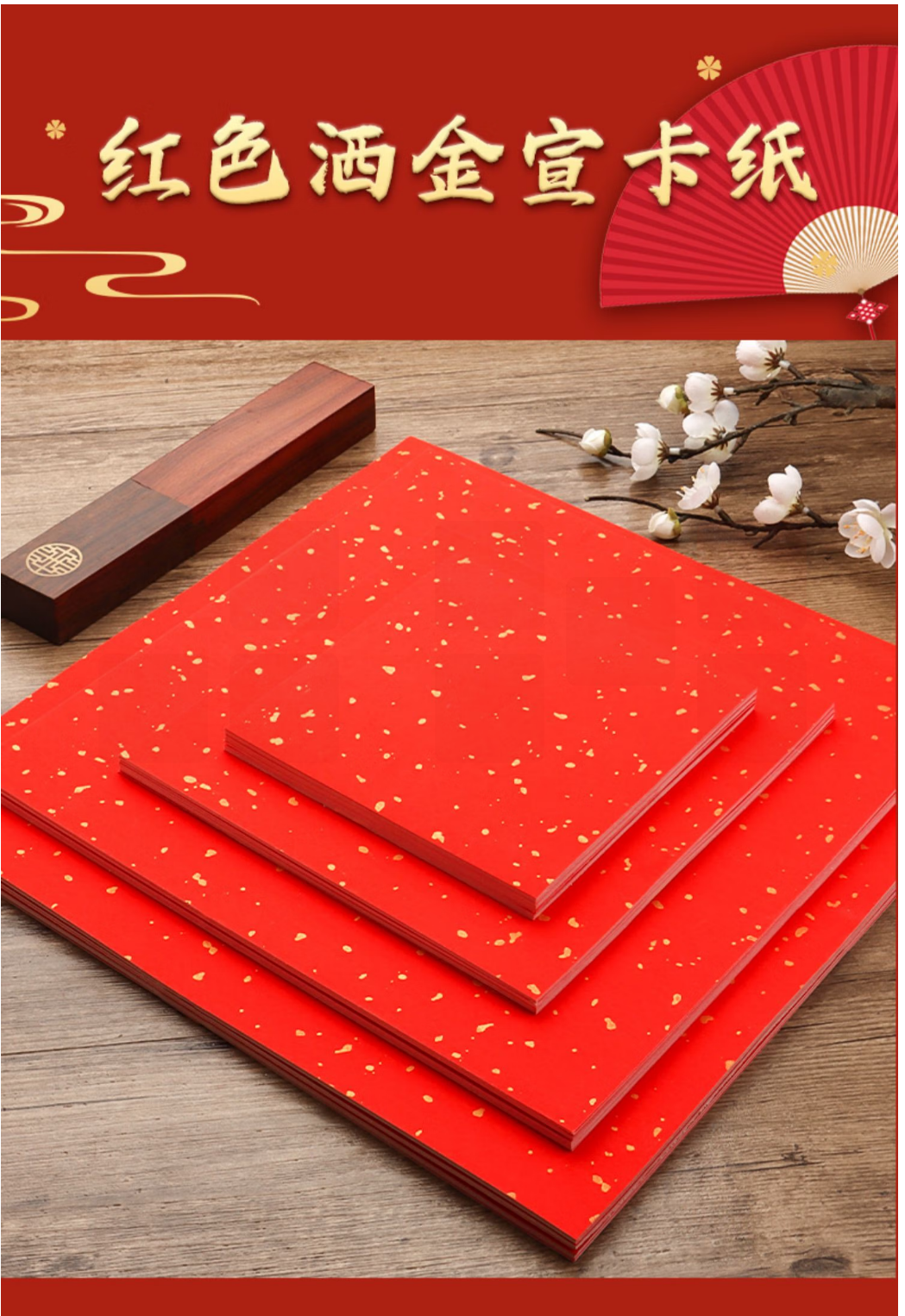 万年红洒金卡纸红色宣纸 38*38cm 10张/包 货号:LJ
