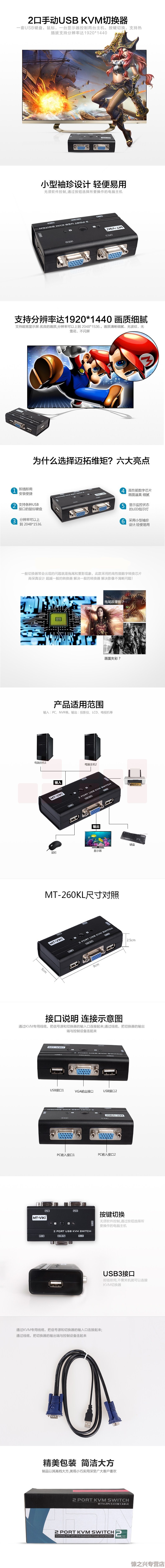 迈拓维矩 MT-260KL 多电脑kvm切换器2口usb显示器键鼠二进一出VGA